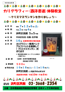 12月6日開催【浜町区民館】利用促進事業 カリグラフィー(西洋書道)体験教室