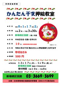 1月17日開催【新場橋区民館】かんたん干支押絵教室